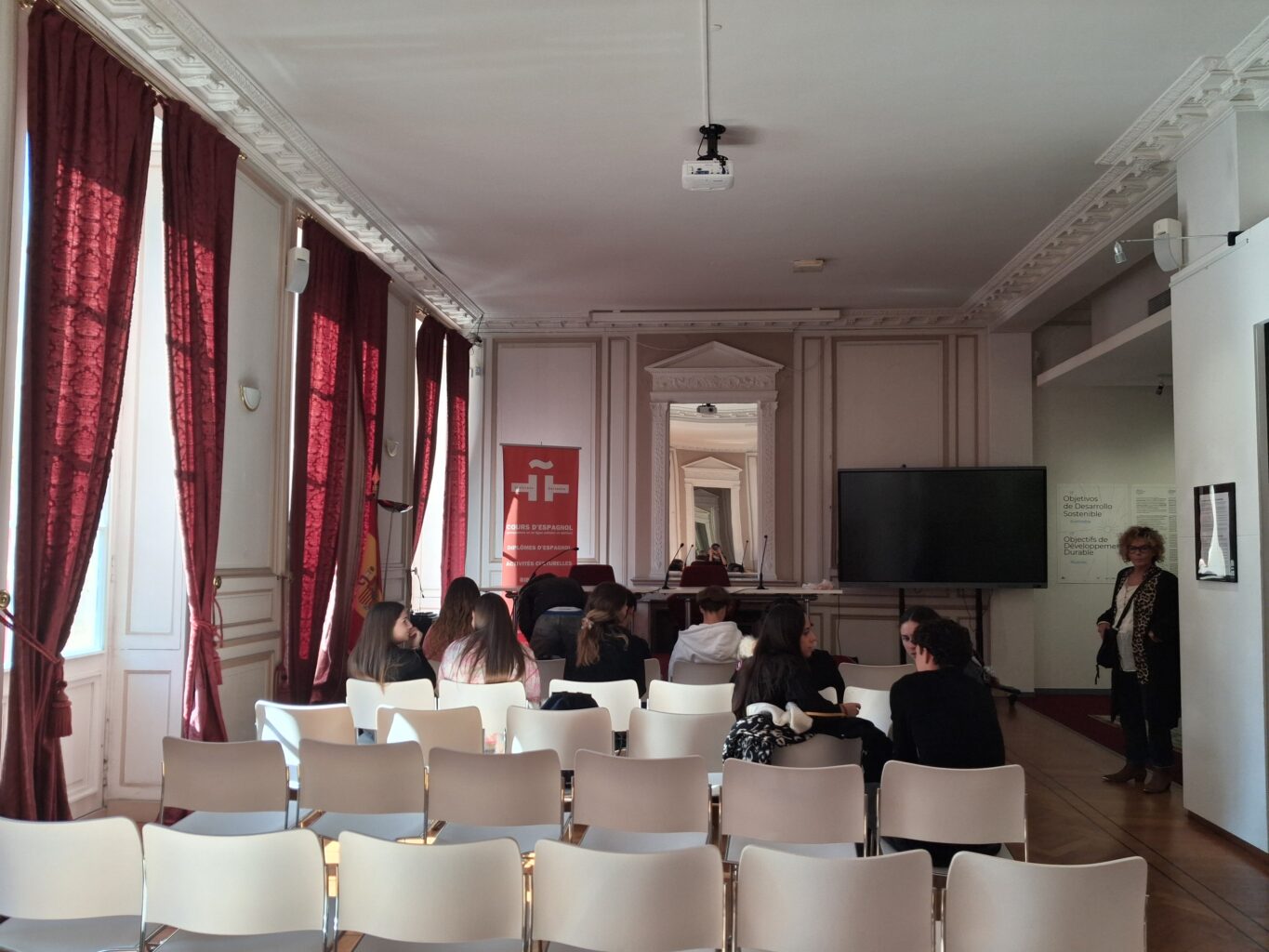 D’autre part, dans le cadre de leur parcours citoyen et linguistique, les élèves de la section euro espagnol ont visité l’Institut Cervantes de Bordeaux pour une activité autour des 17 Objectifs du Développement Durable.